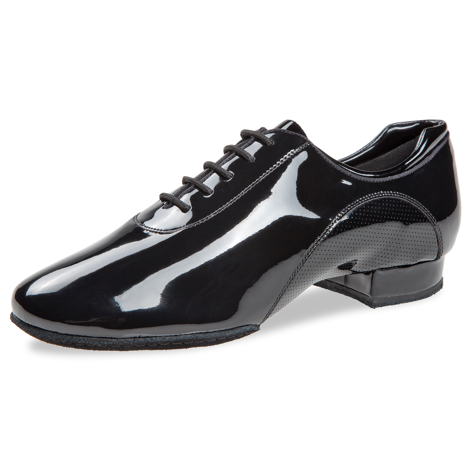 Mod. 224 DanceArt Herren Standard Tanzschuhe mit geteilter Laufsohle und Multiflex Fussbett Weite F Absatz 2,5cm mit Fersendämpfung schwarz Lack Synth. / schwarz Lack Synth perforiert
