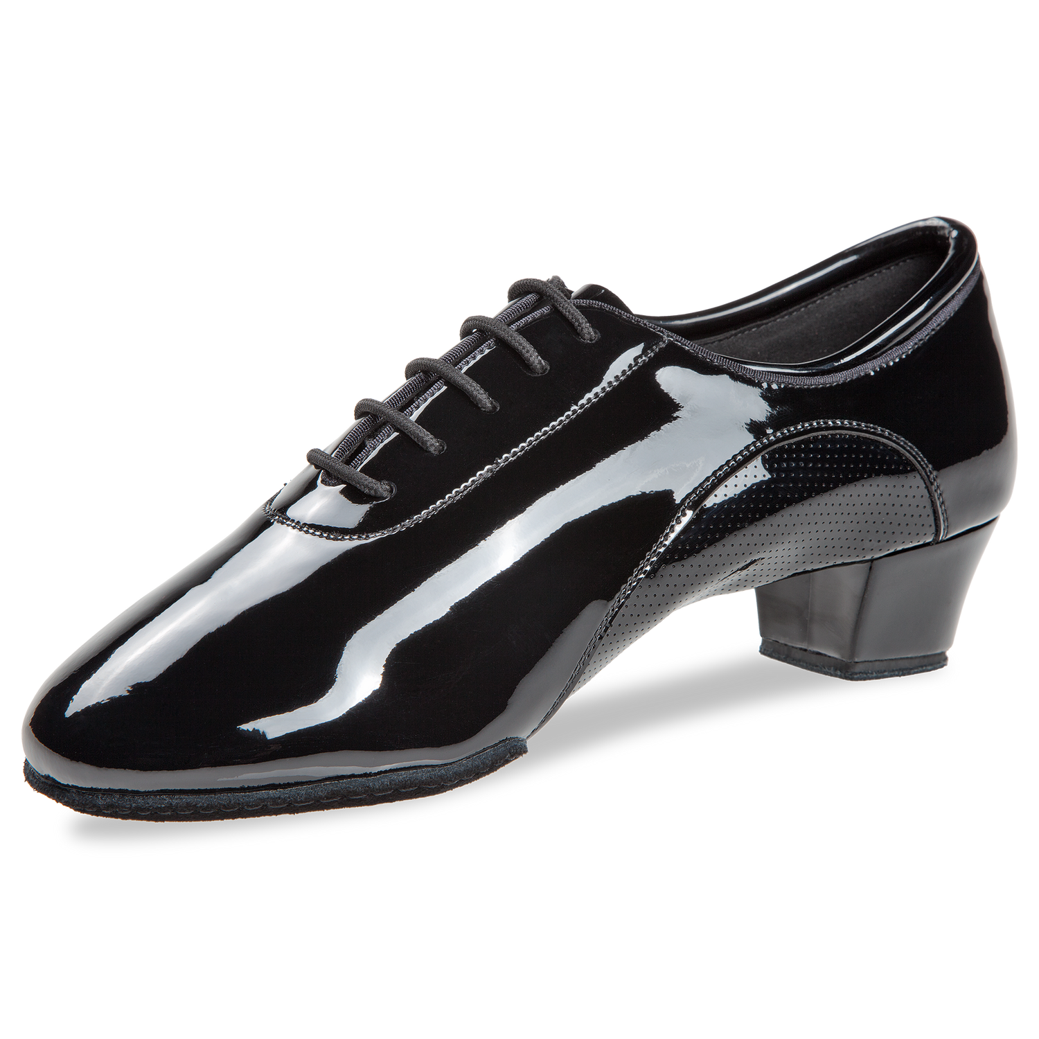 Mod. 224 DanceArt Herren Latein Tanzschuhe mit geteilter Laufsohle und Multiflex Fussbett Weite F Absatz 4,5cm mit Fersendämpfung schwarz Lack Synth. / schwarz Lack Synth perforiert